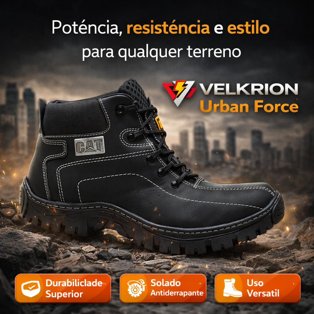 A Bota Velkrion Urban Force foi desenvolvida para homens que precisam de durabilidade, conforto e presença no dia a dia.